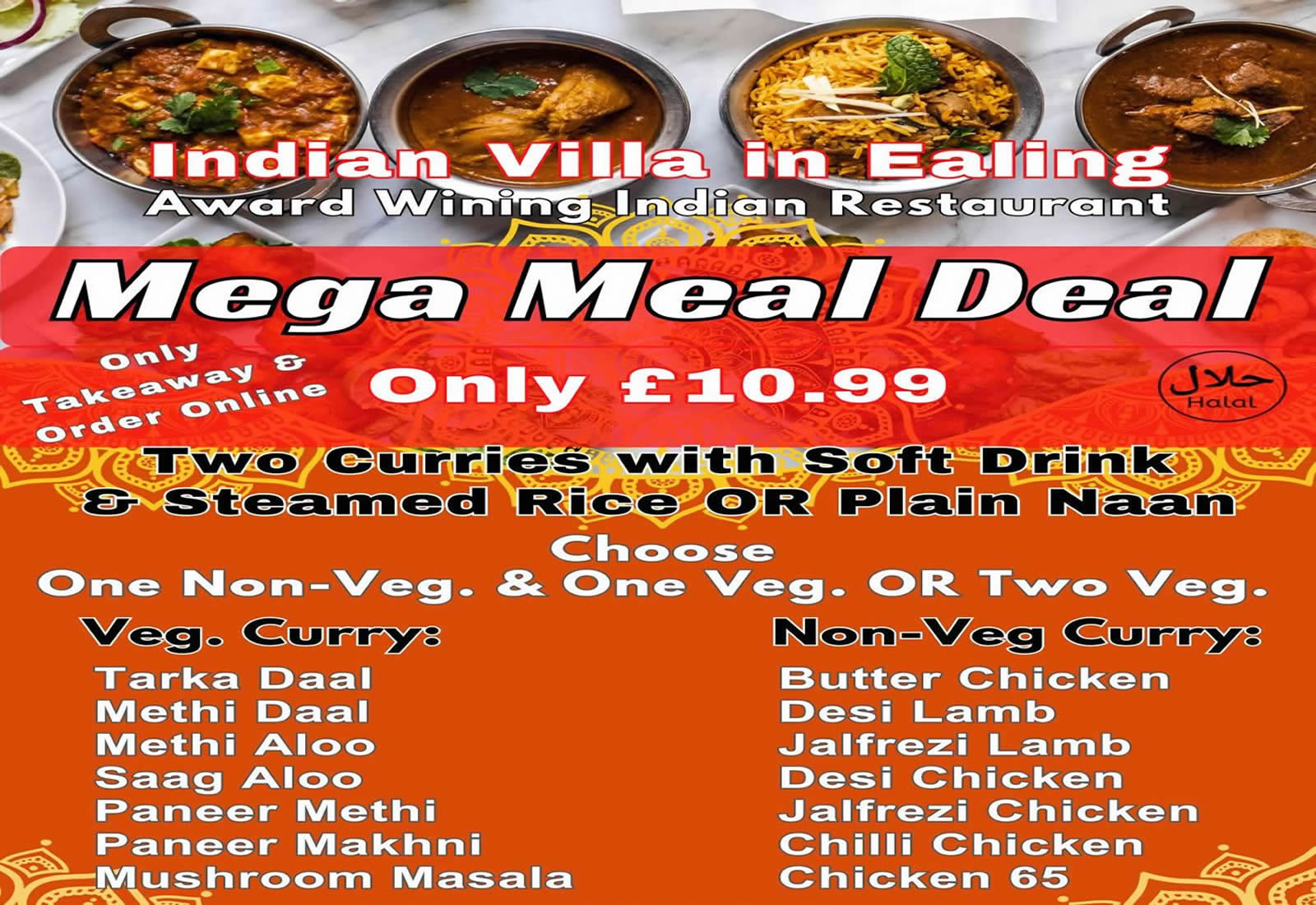 Indian Villa has been delivering authentic Indian cuisine to diners in London for over 12 years. We bring India to you via traditional cooking methods, only the freshest ingredients and stunning Indian décor. Stepping into the restaurant is a treat for the senses as you’re greeted by a traditionally decorated Indian restaurant, the superb aroma of spices and a warm greeting from out friendly staff. We believe dining out is more than just a meal – it’s an experience. Our welcoming and knowledgeable waiting staff are there to advise you on our dishes and can help you decide which of our old-style Indian meals is right for you.